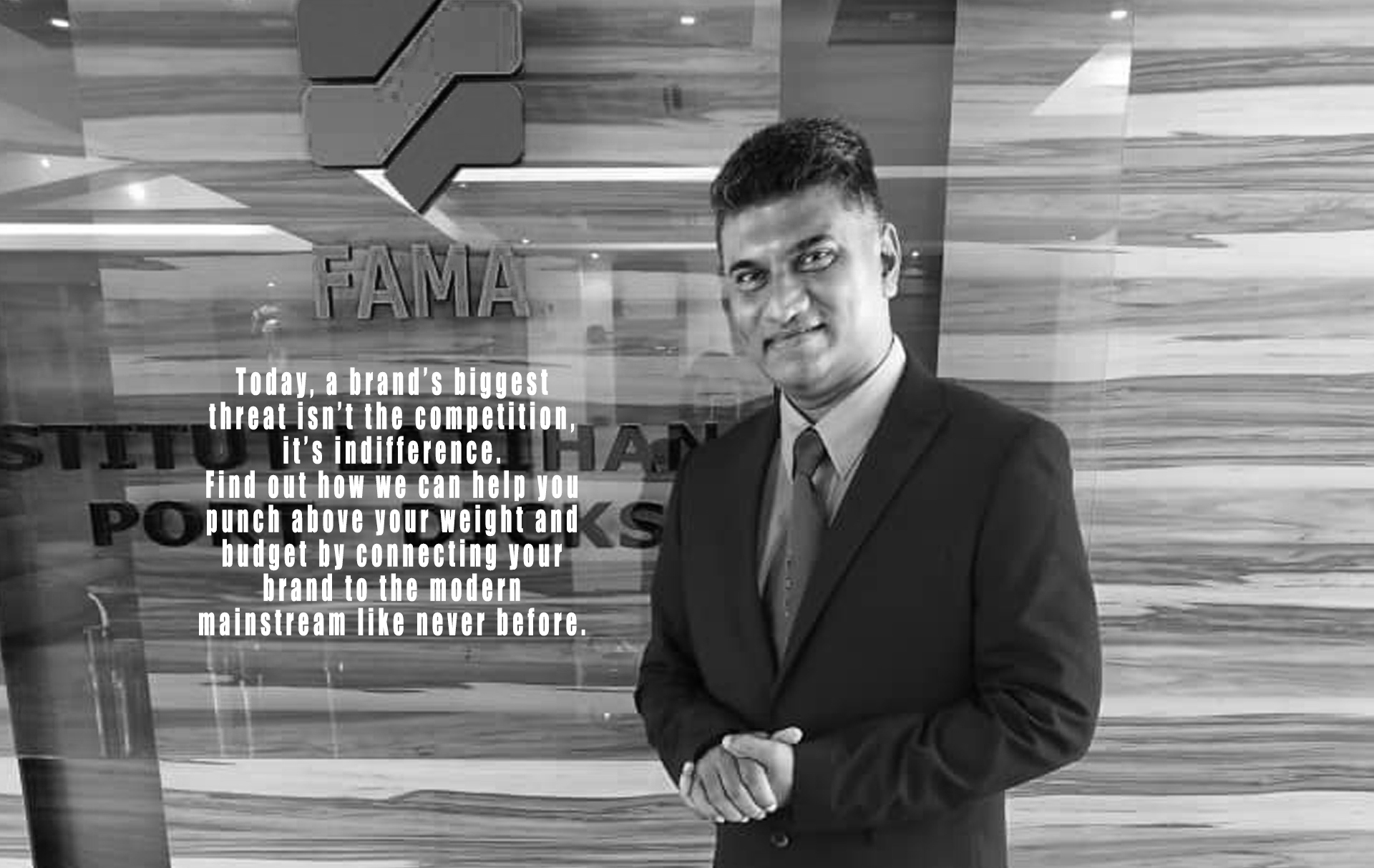As a global leader in brand and technologies, I have a sense of vision direction and destination. And this had captured the local markets which I have personally developed such as, KFC, Tic-Tac, Nutella, Mama, Red Bull, Carlsberg, Chang Beer, Tiger, Mandalay, Sedona, Swan, Budweiser, Komori Japan, Dutch Lady, McDonalds, Philips, National, Toshiba, Ayam Brand, Nissin Food, English Code, Primark, Kit-kat, Cornetto, McCoy, Jacob’s, Pringles, Polo, Prada, Barilla, Versace, Nestle, P&G, Petronas Lubricants (PLI) Malaysian Sea Games 2001 & 2017, Tenaga Nasional, Acasia, TNB , Baba's, Puteri, Manja, Lingam's, Alif, Nona, Green House, Sweetie, M3, MyFlavor, AgroMas (FAMA) ECO, Agro Bank, Bistro, Quaker, and many more.